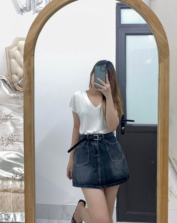 Chất liệu chân váy : Chất vải da cá đẹp co giãn