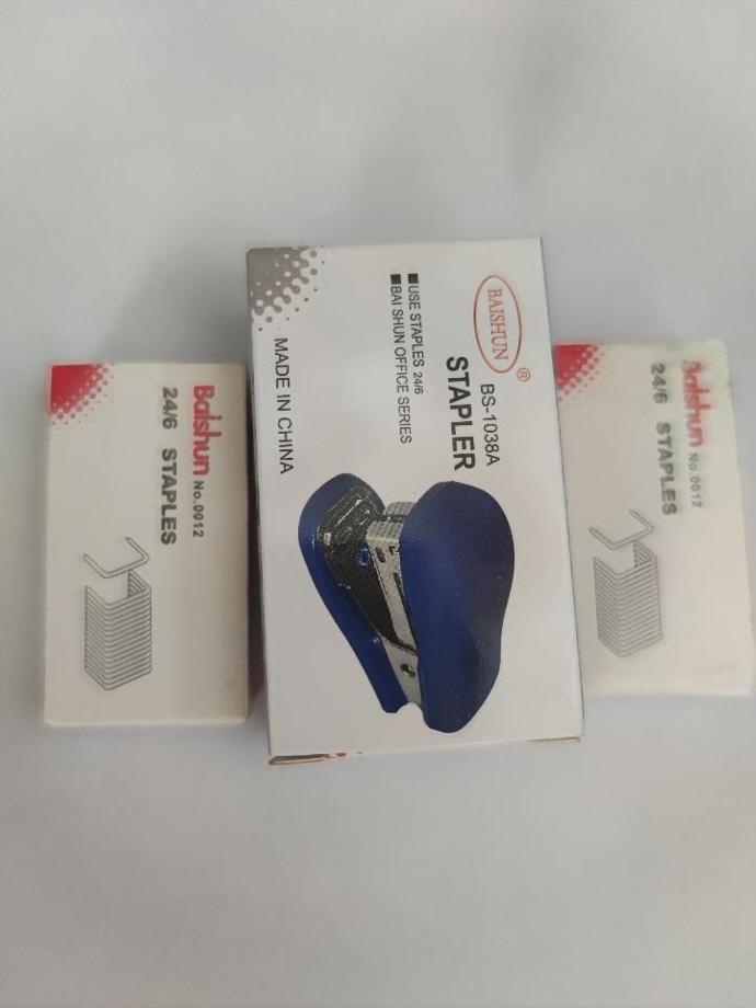 Bộ Bấm kim mini Baisun BS 1038A và 2 hộp kim 24/6 số 12